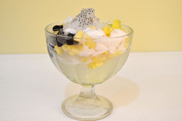 Minuman dengan penyajian mangkok es,menggunakan es serut dengan rasa khas vanilla di campur susu kental putih.dengan variasi isi janggelan,kelapa muda,nangka dan alpokat.ditambah selasih diatas es serut.
