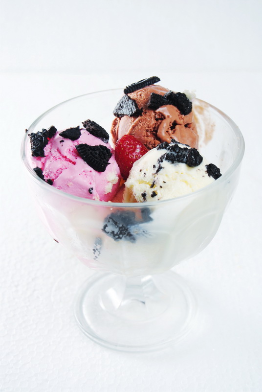 Perpaduan 3 rasa ice cream yang di taburi dengan irisan oreo.